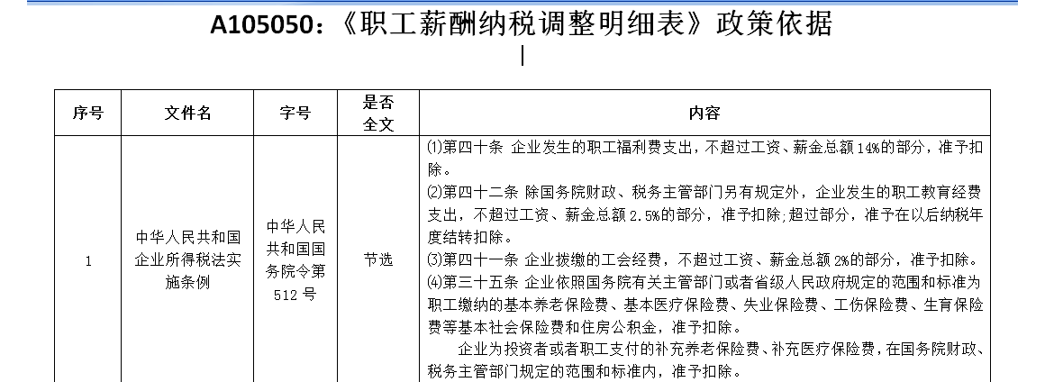 《职工薪酬纳税调整明细表》政策依据